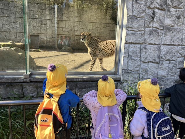 動物園では「チーターさんおはよう!」と元気にご挨拶したり、ちょうど朝ごはん中のキリンさんを間近で見ることができ「キリンさんのベロ長い!」と驚いたり。他にも、フラミンゴやゾウなどたくさんの動物に会うことができました。